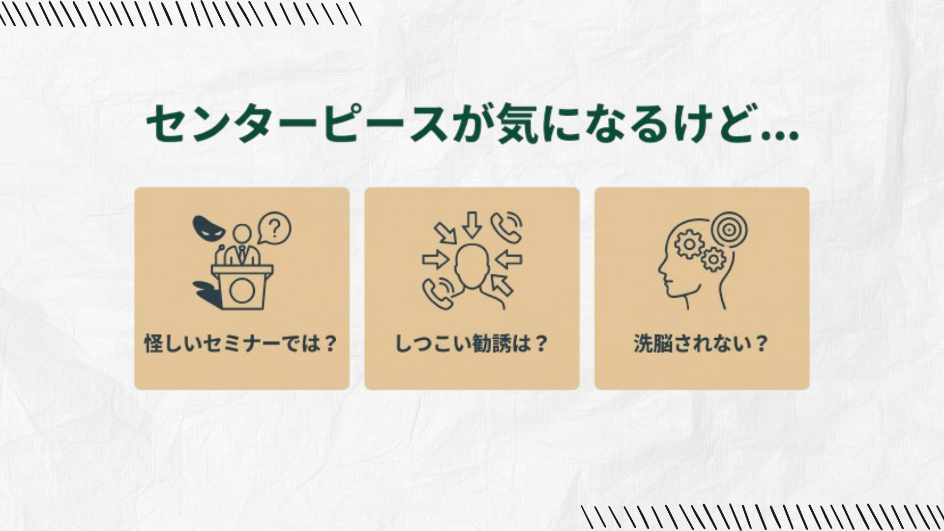 - センターピースは怪しいセミナーなのでは?