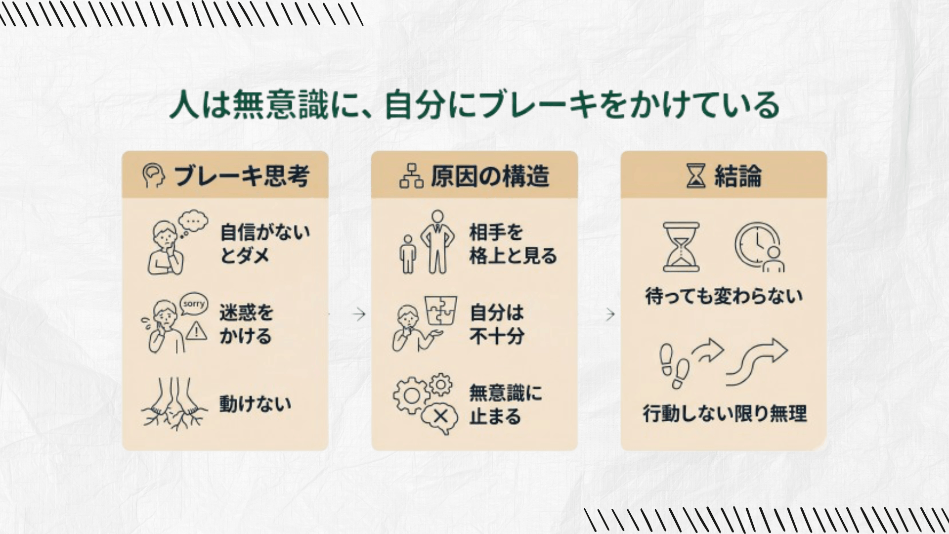 だから「今の自分にはふさわしくない」と、無意識にブレーキをかけてしまうのです。