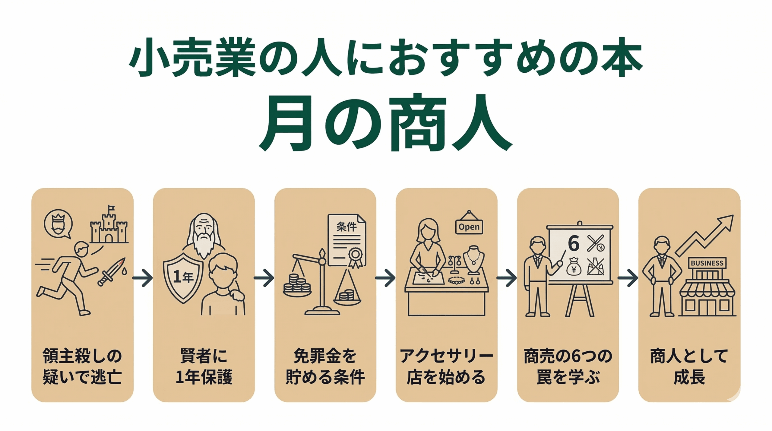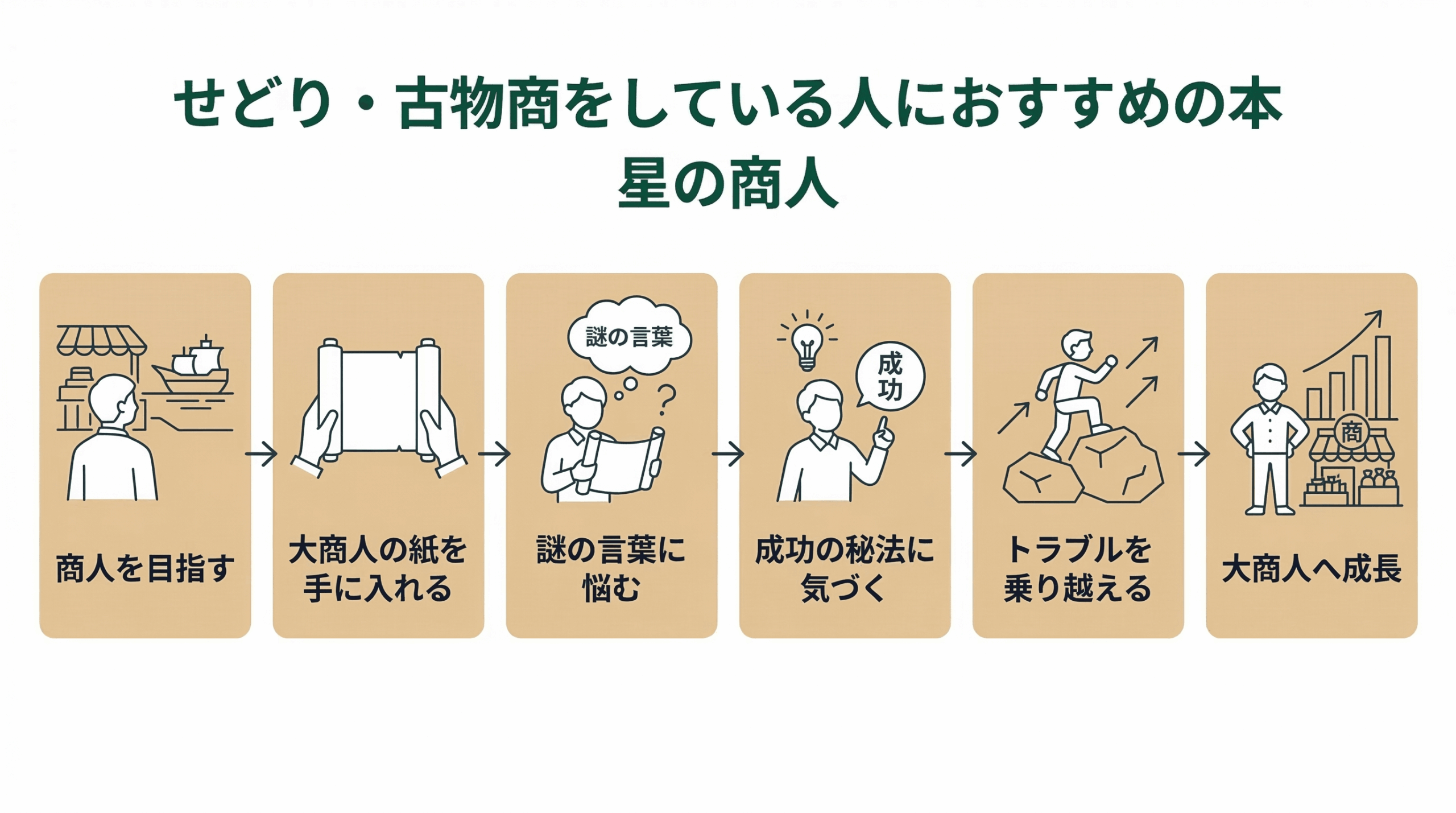 大商人を目指しトラブルを解決していく主人公を通して、幸せに成功するヒントをたくさん学べる物語です。