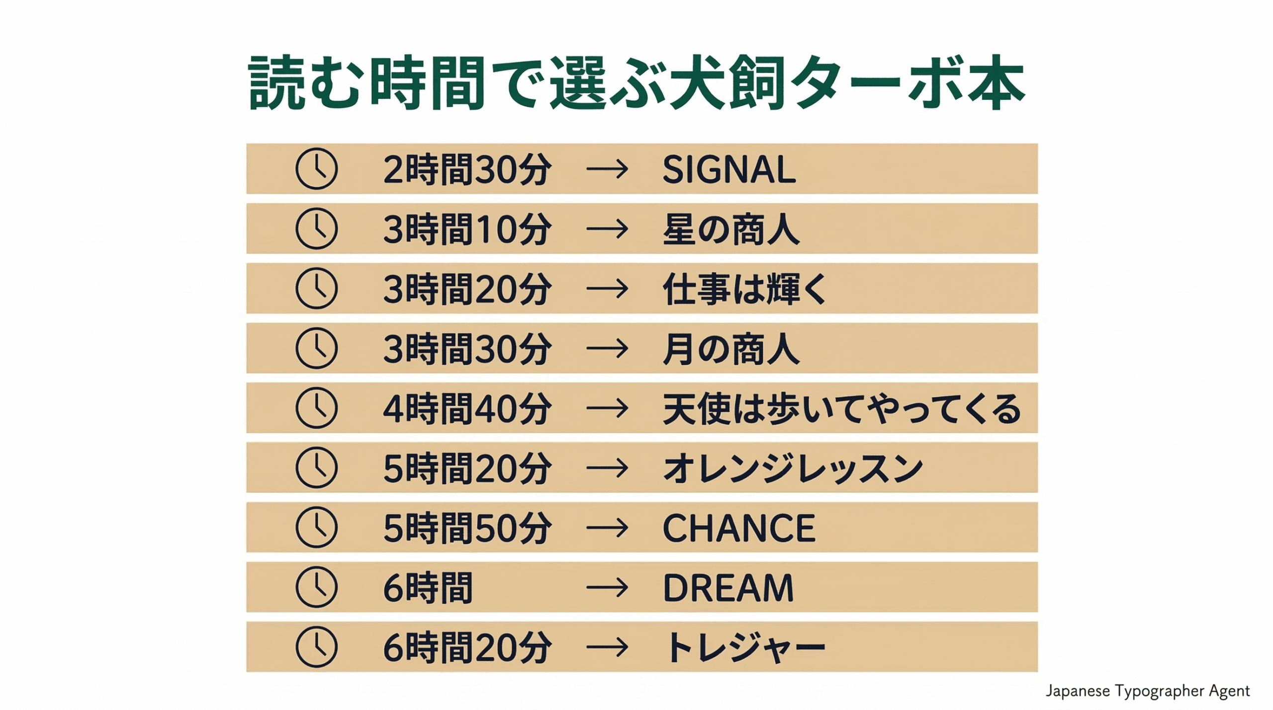それぞれの本を読むのに必要な、およその時間がこちらです。