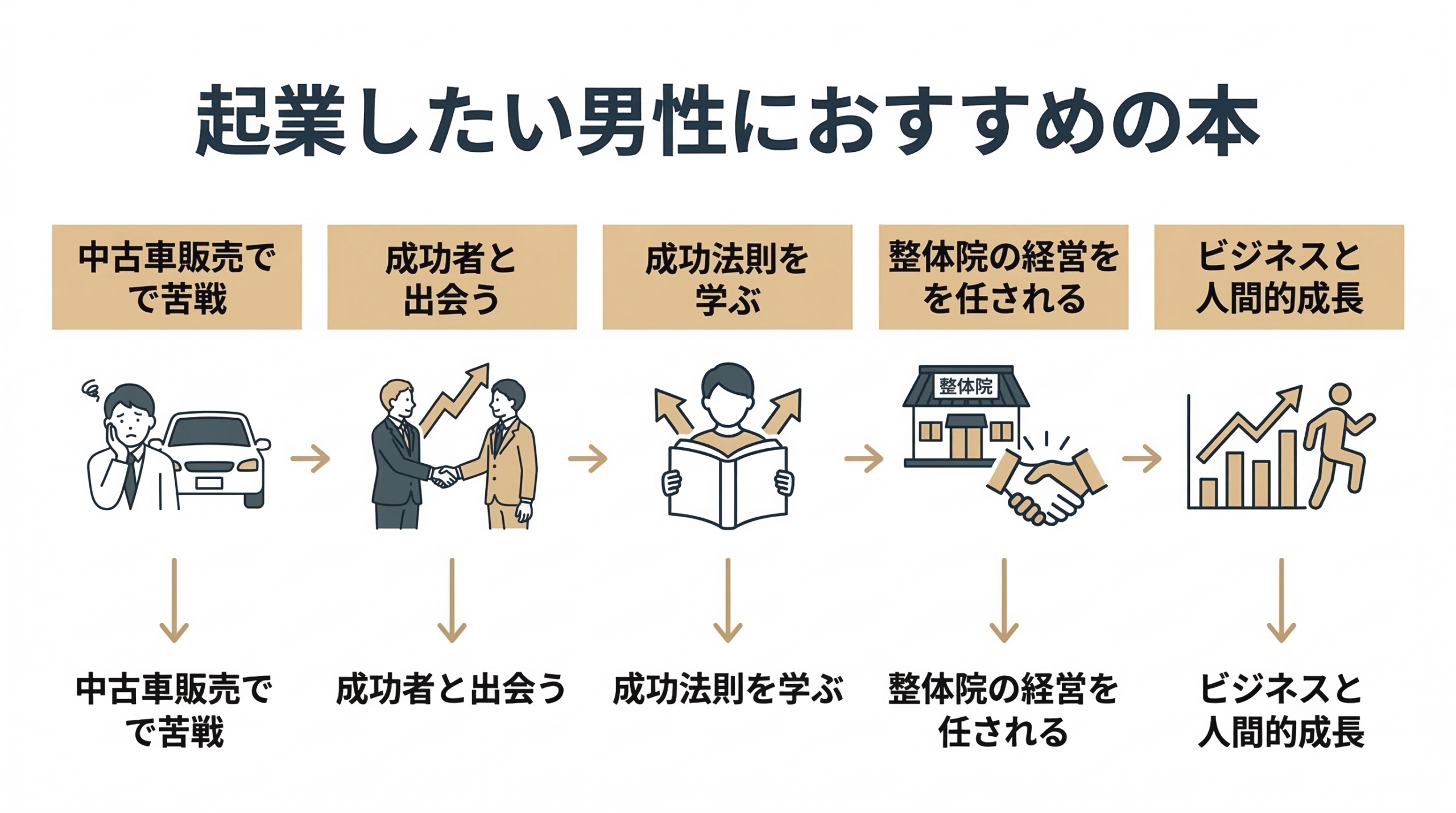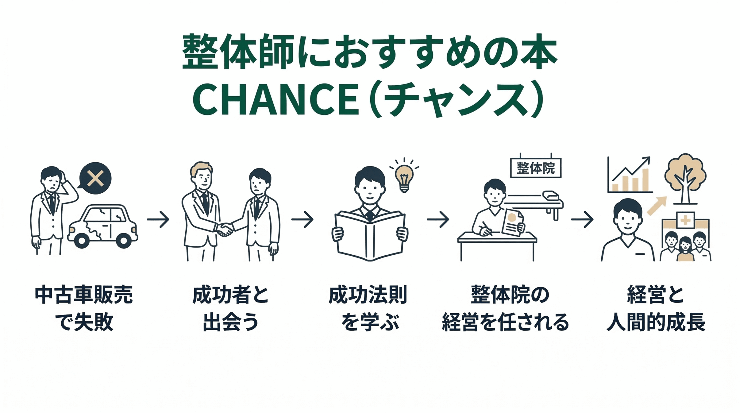 成功者にビジネスを学びながら、整体院の経営をしていく物語です。