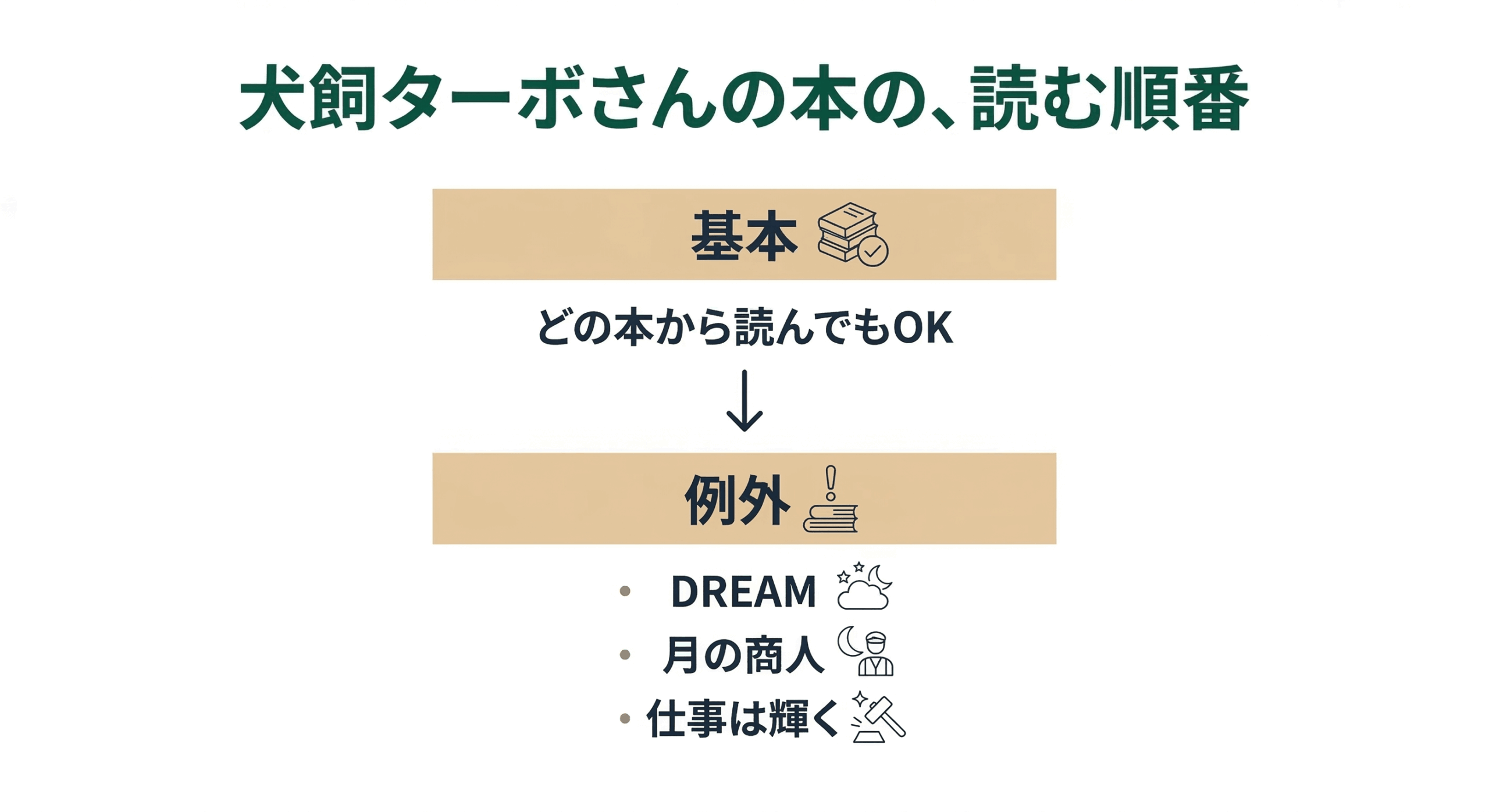 そこで、犬飼ターボさんの本をすべて読了していて、犬飼ターボさんのセミナーに現在通っている僕が、おすすめの本の選び方を紹介します。